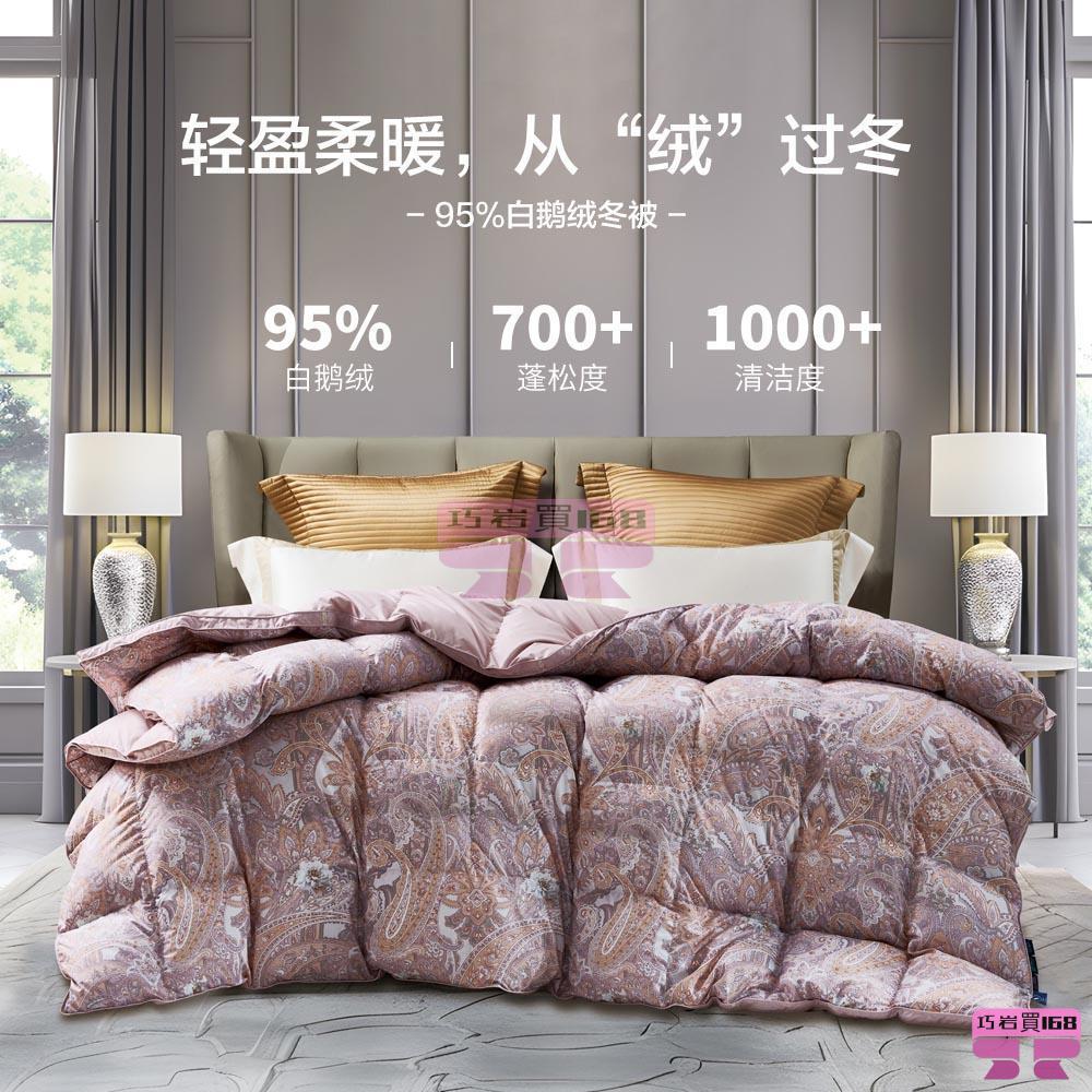 填充物:95%白鵝絨 填充物克重:1100g 藝術印花,防鑽絨面料,厚實耐磨